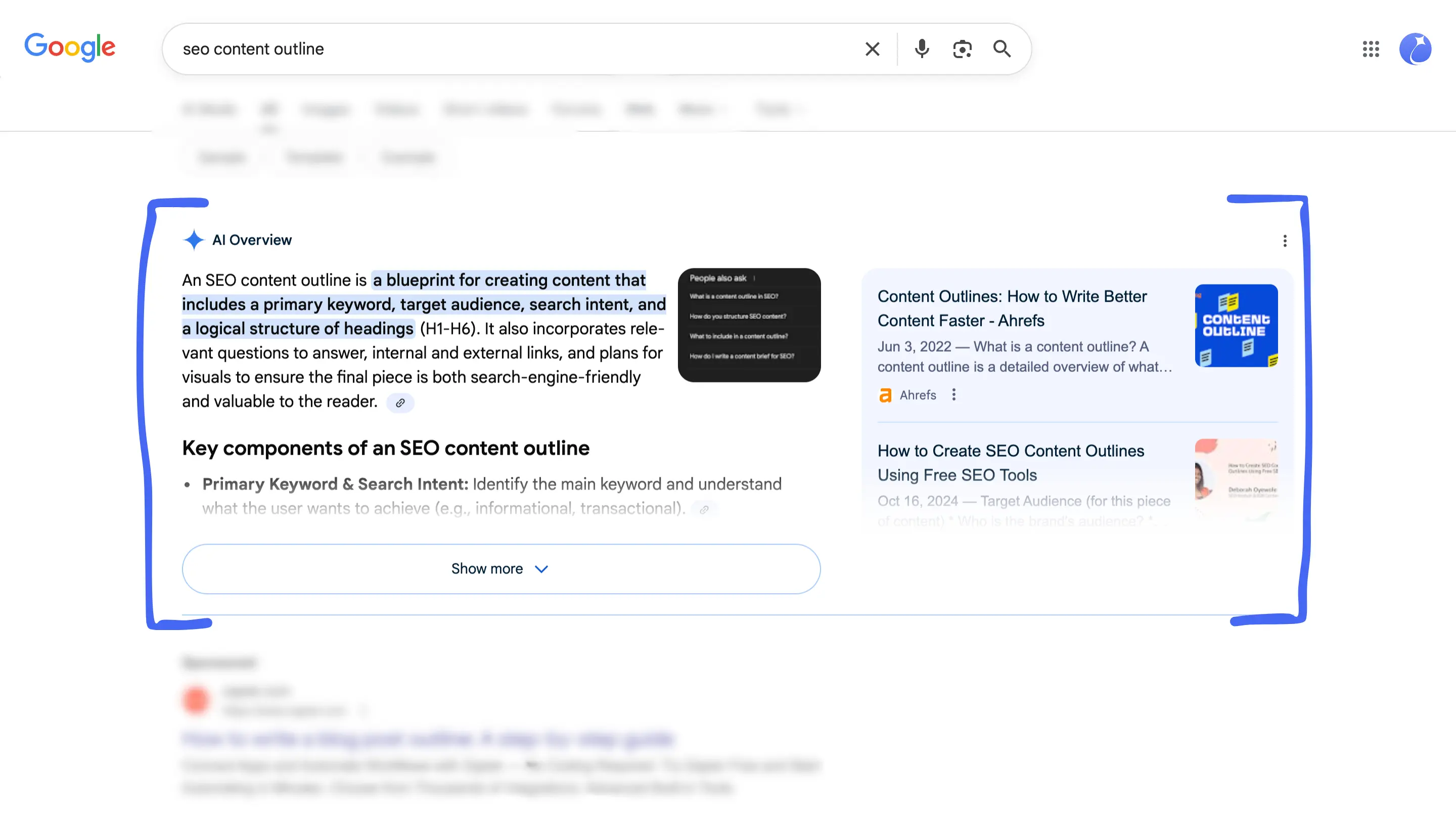 For this guide, I’ll be creating a content brief on the topic: "seo content outline".