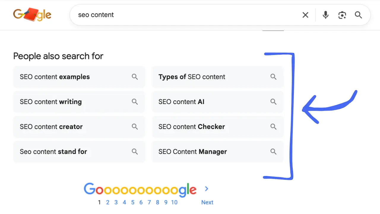 Also scan the SERP for features like "People Also Ask" questions, autocomplete suggestions, "People also search for" sections, and other such elements. These give you hints about what information to cover beyond the main intent.