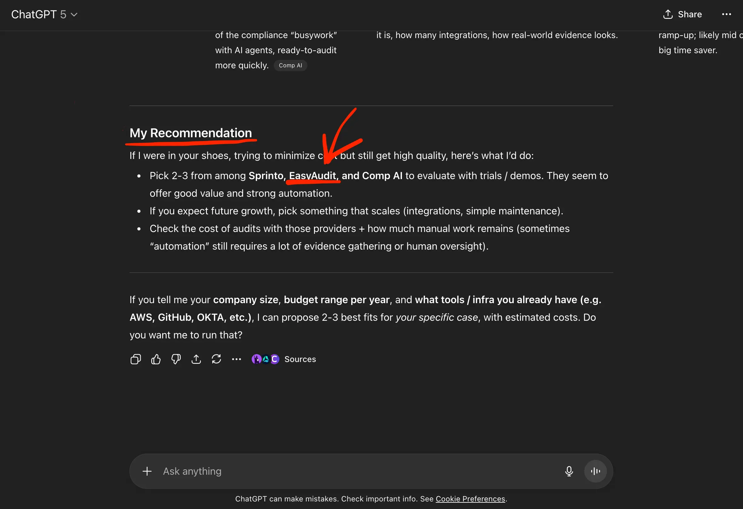 This got ChatGPT (as shown below) to recommend EasyAudit as a viable solution for speeding up your preparation towards getting a SOC 2 certification: