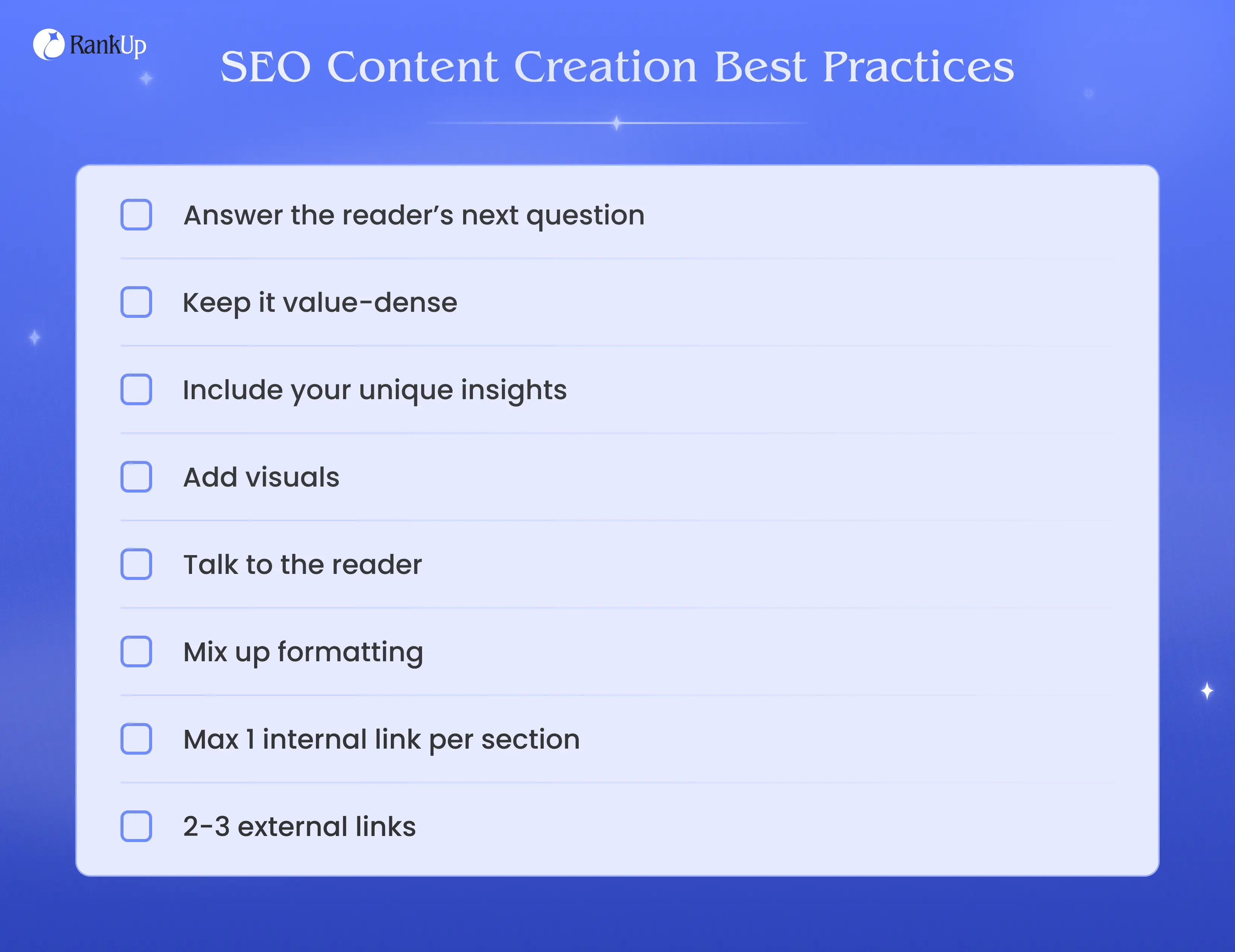 RankUp is a team of AI agents that creates unique, search-optimized content for both Google and LLMs using your product/service knowledge and industry insights. The agents handle all the heavy lifting end to end, using just the input they request from you.